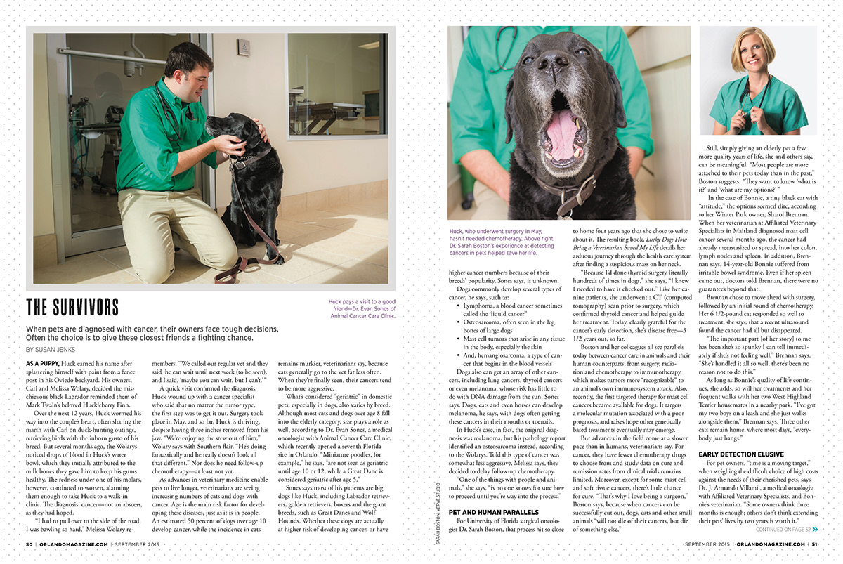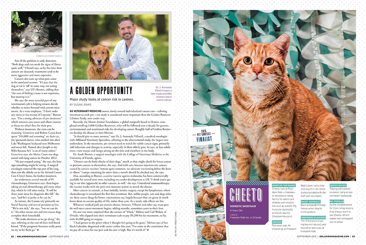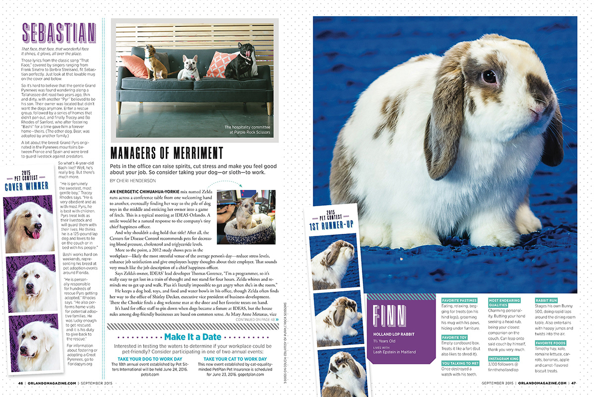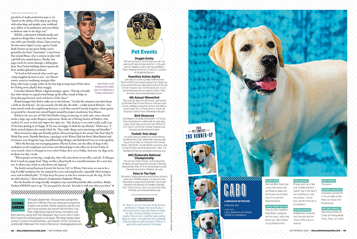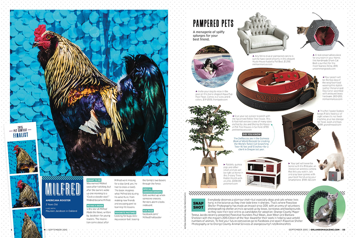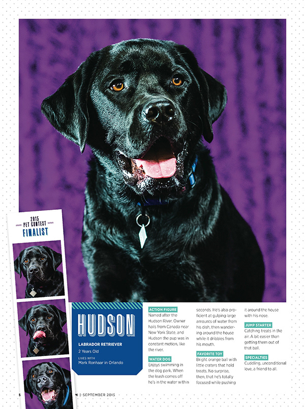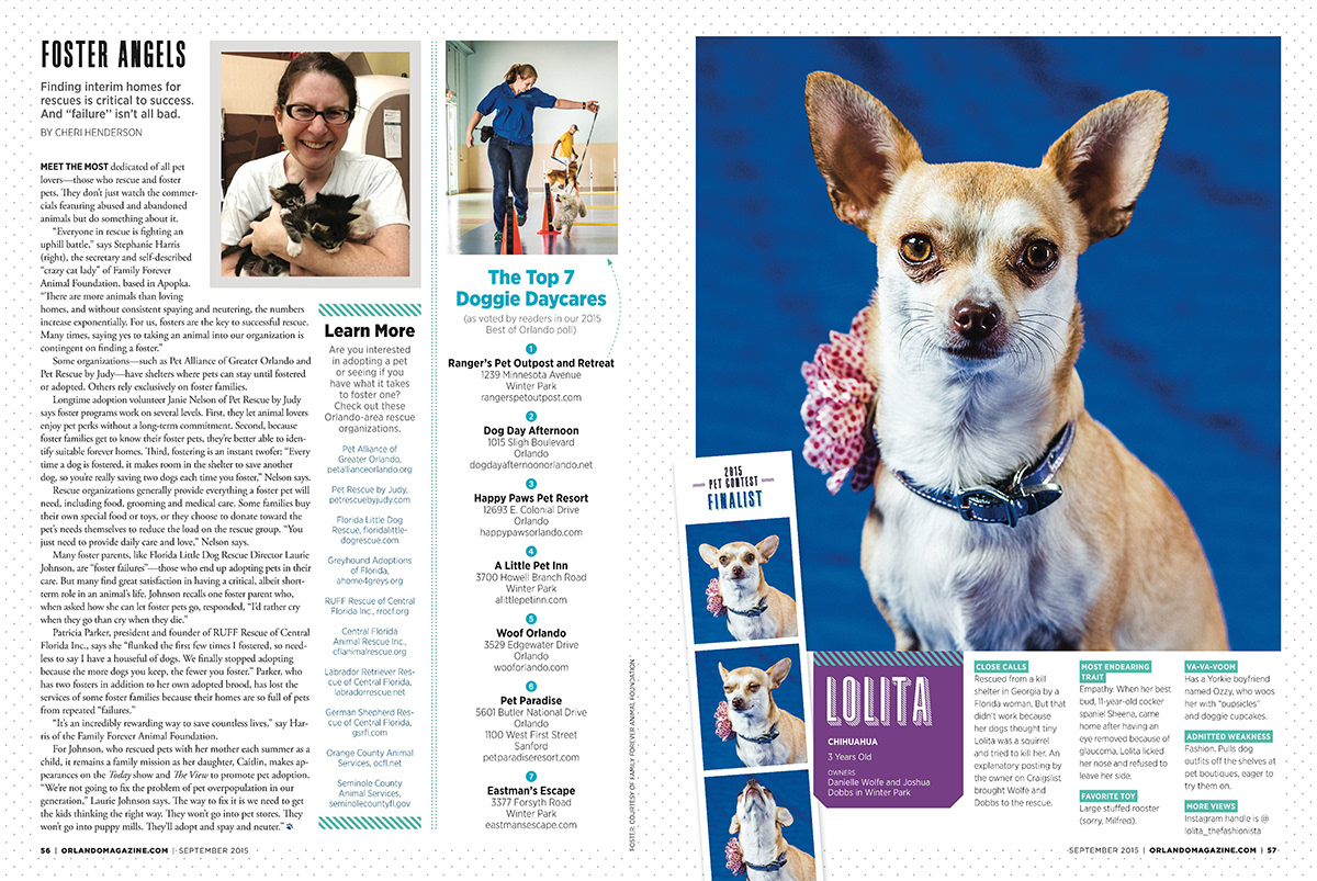 Art direction and design of the cover and feature for the 2015 Pet Issue of Orlando Magazine, September 2015.