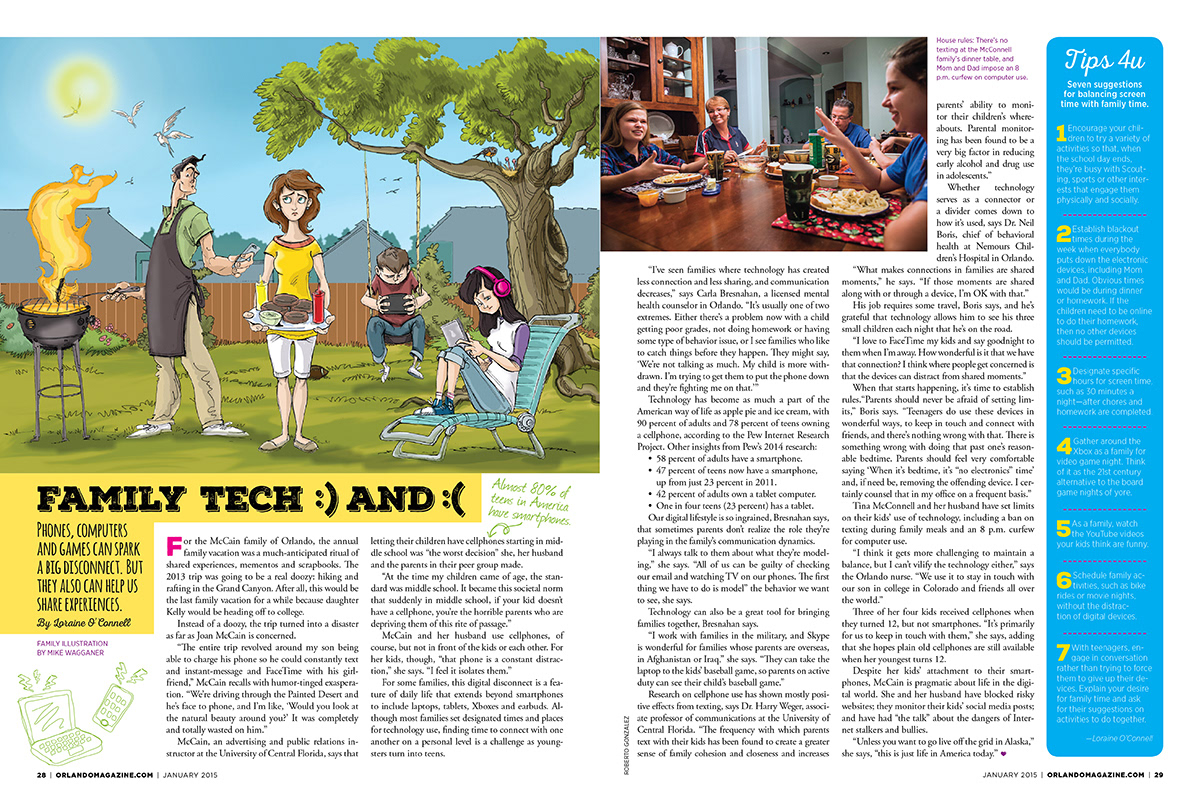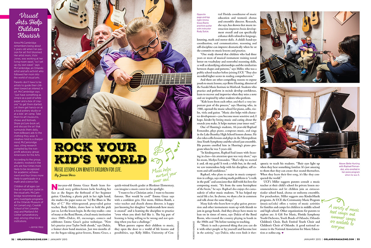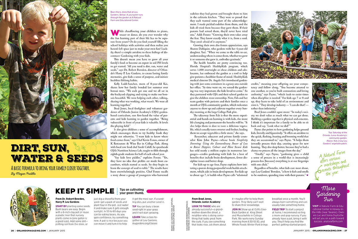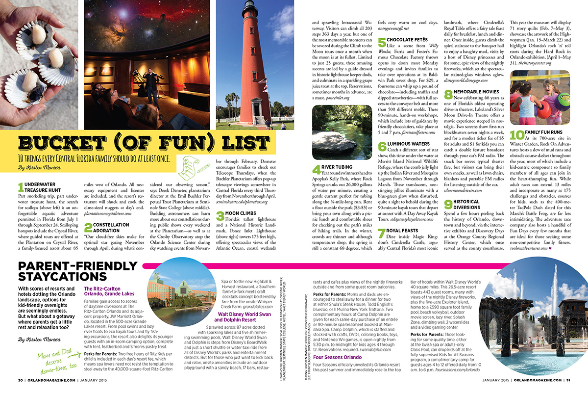 The January 2015 family issue of Orlando magazine, cover and feature layout.