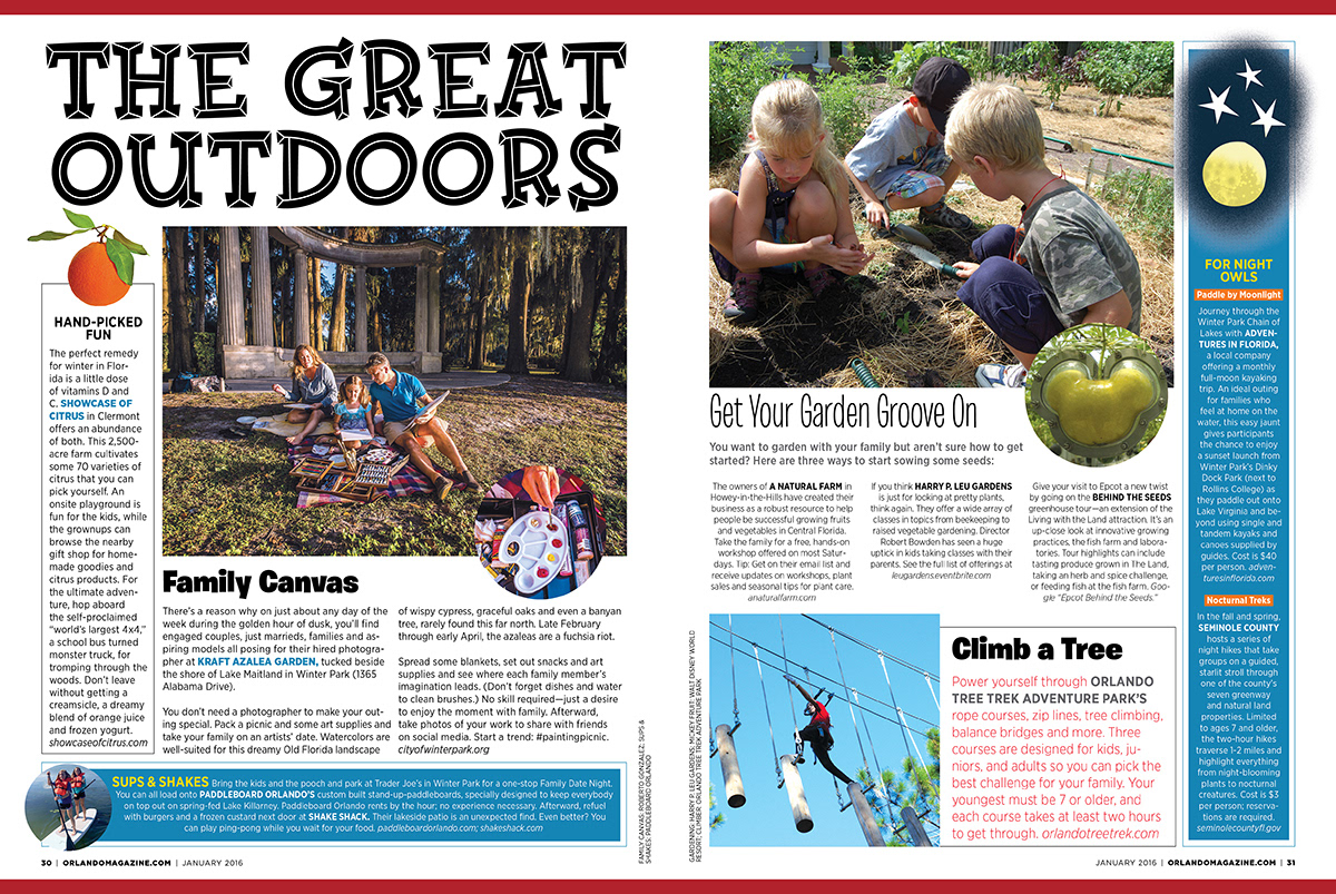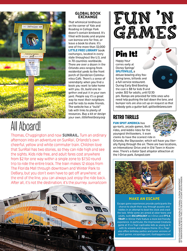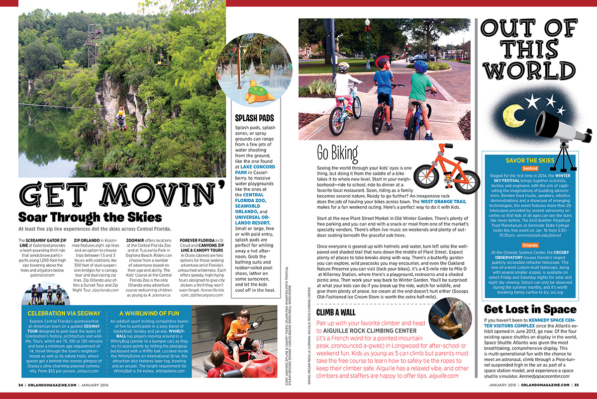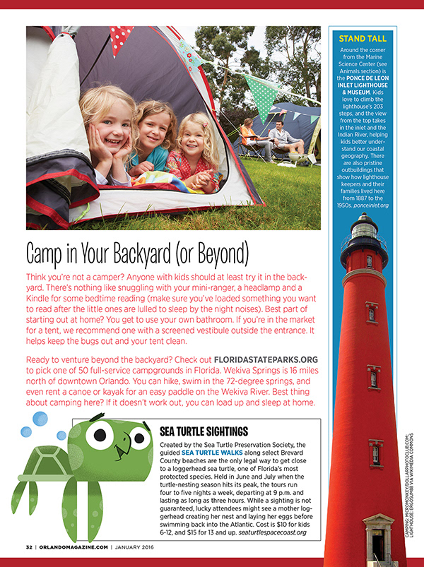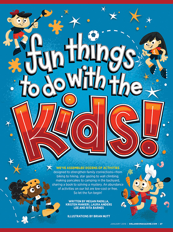 Kids Issue editorial layout for the January 2016 issue of Orlando magazine, featuring illustrations by Brian Nutt.