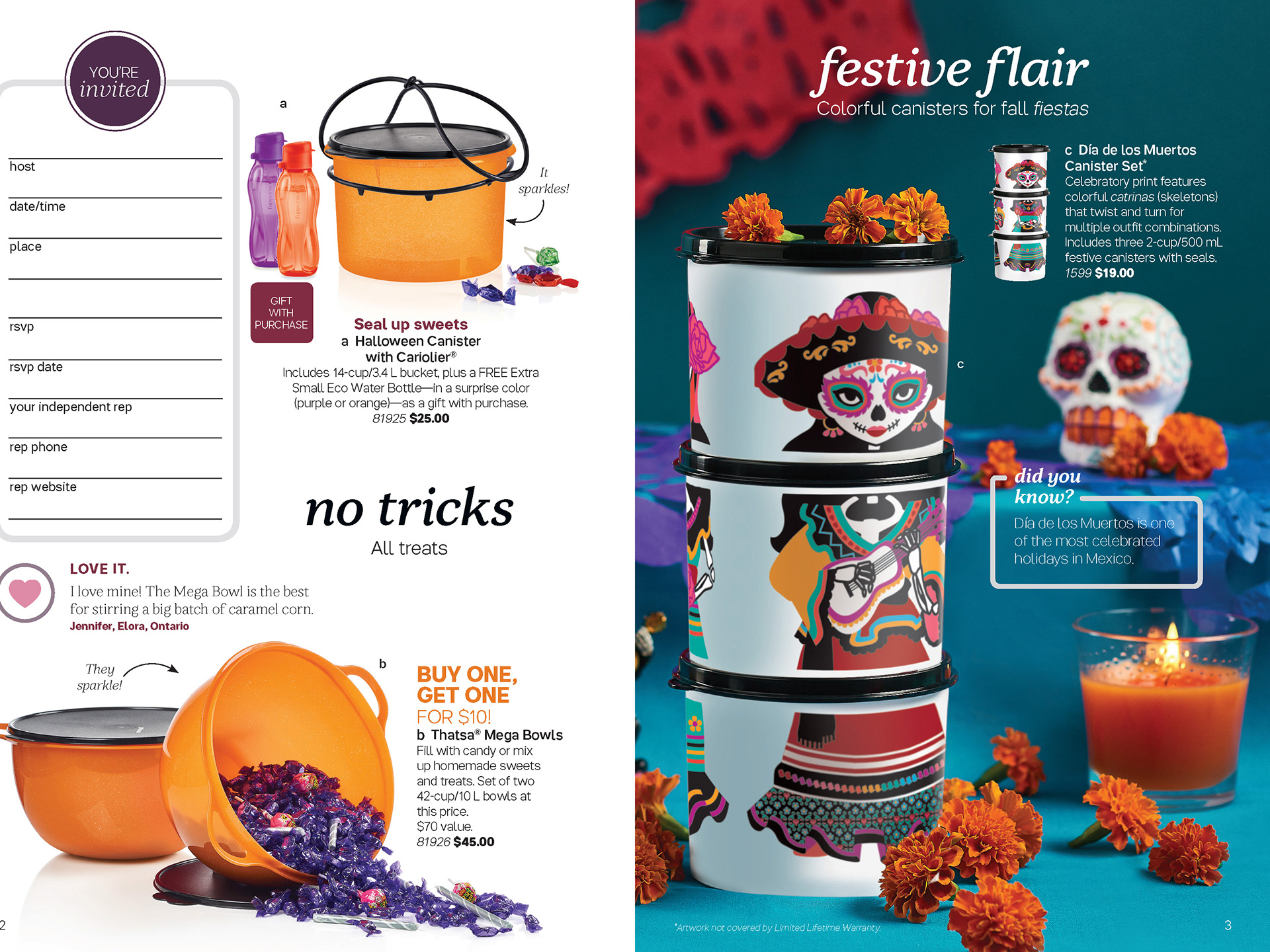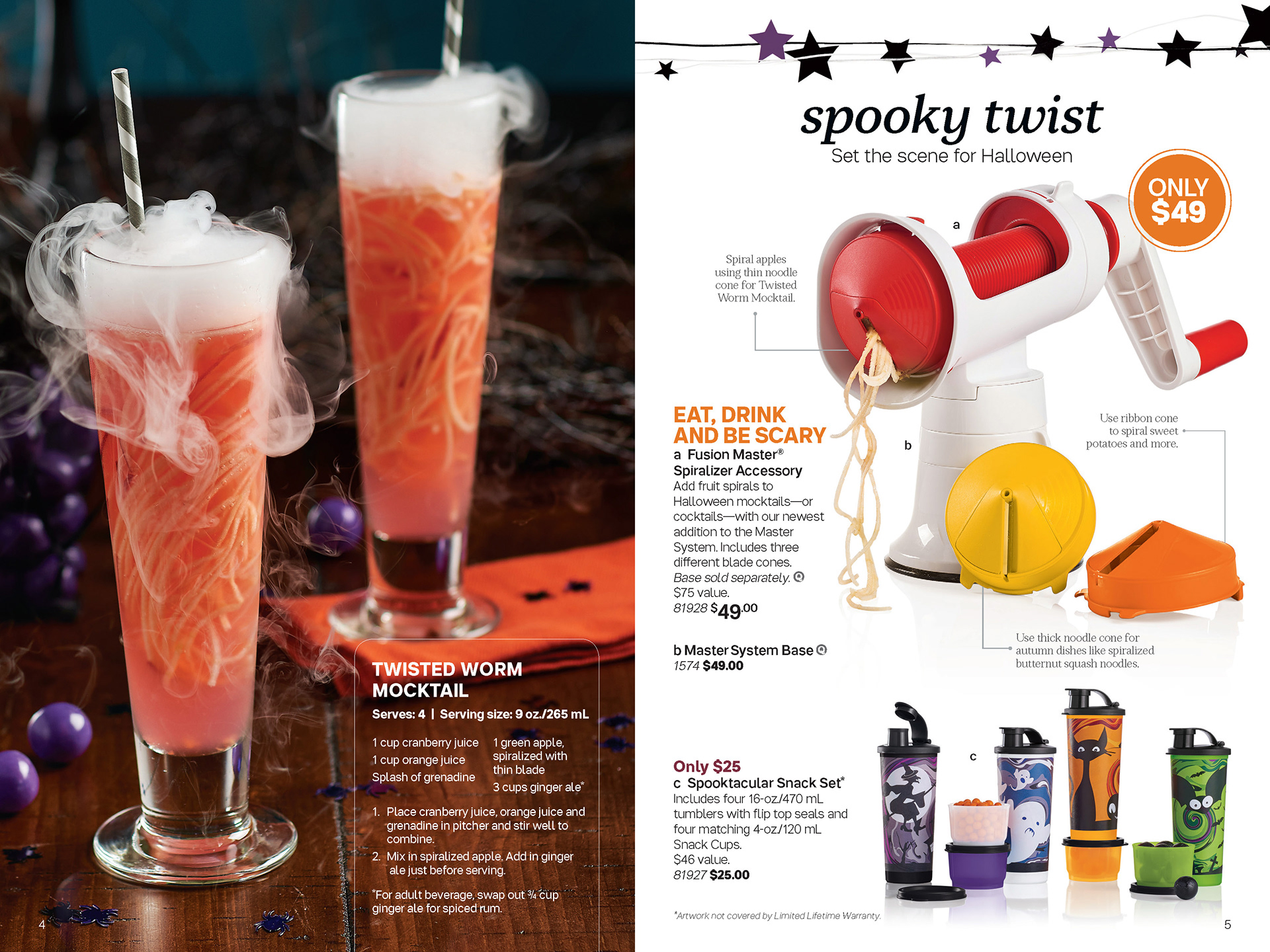 MidSeptember double brochure with cooking/serving stories, and featuring a flip-around Halloween section.