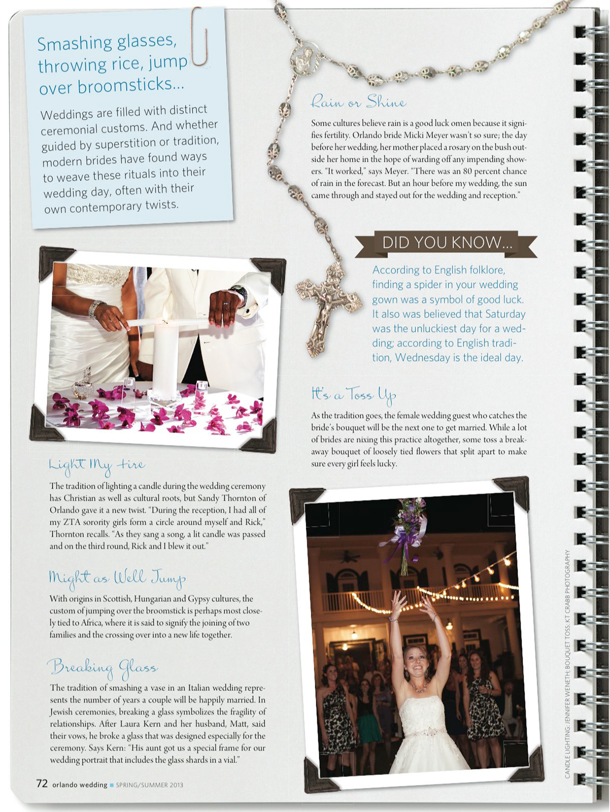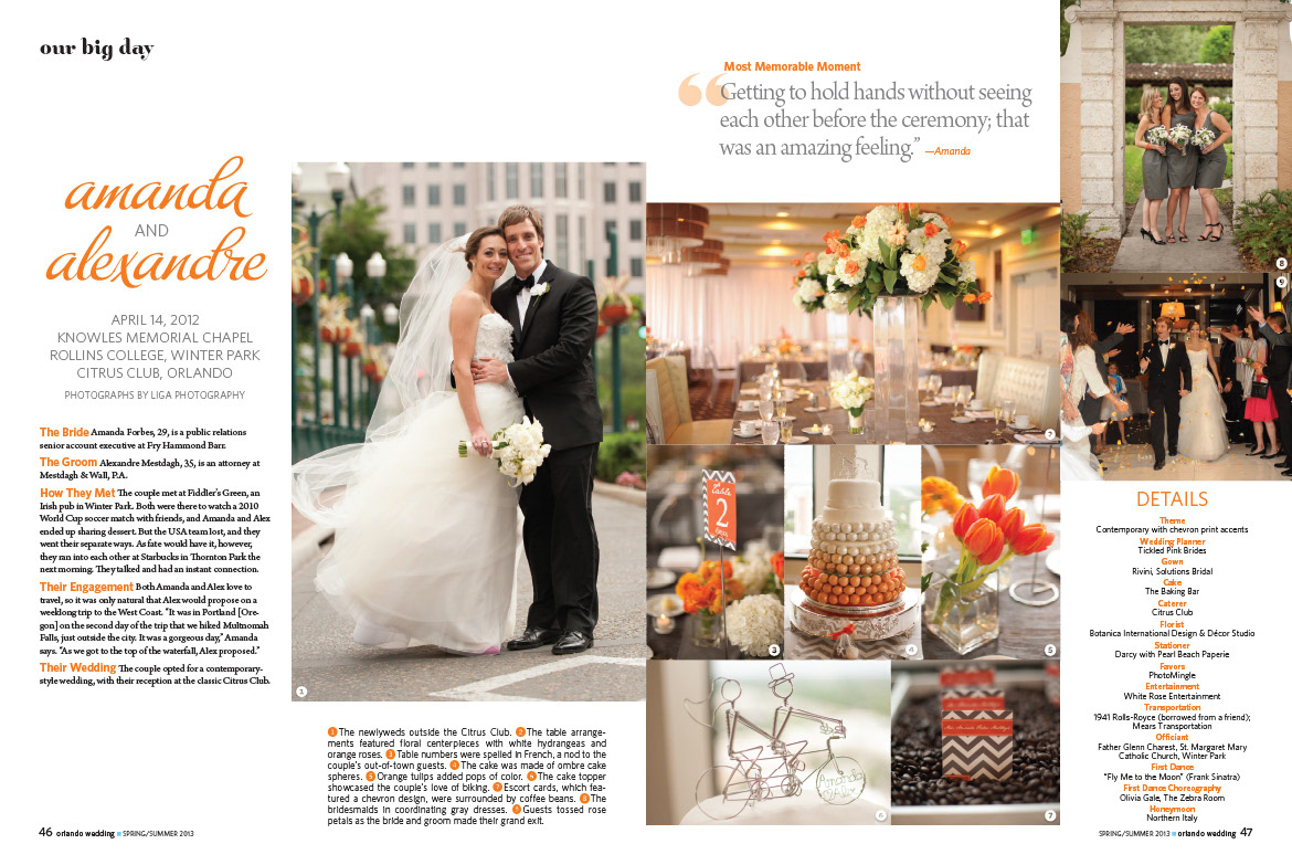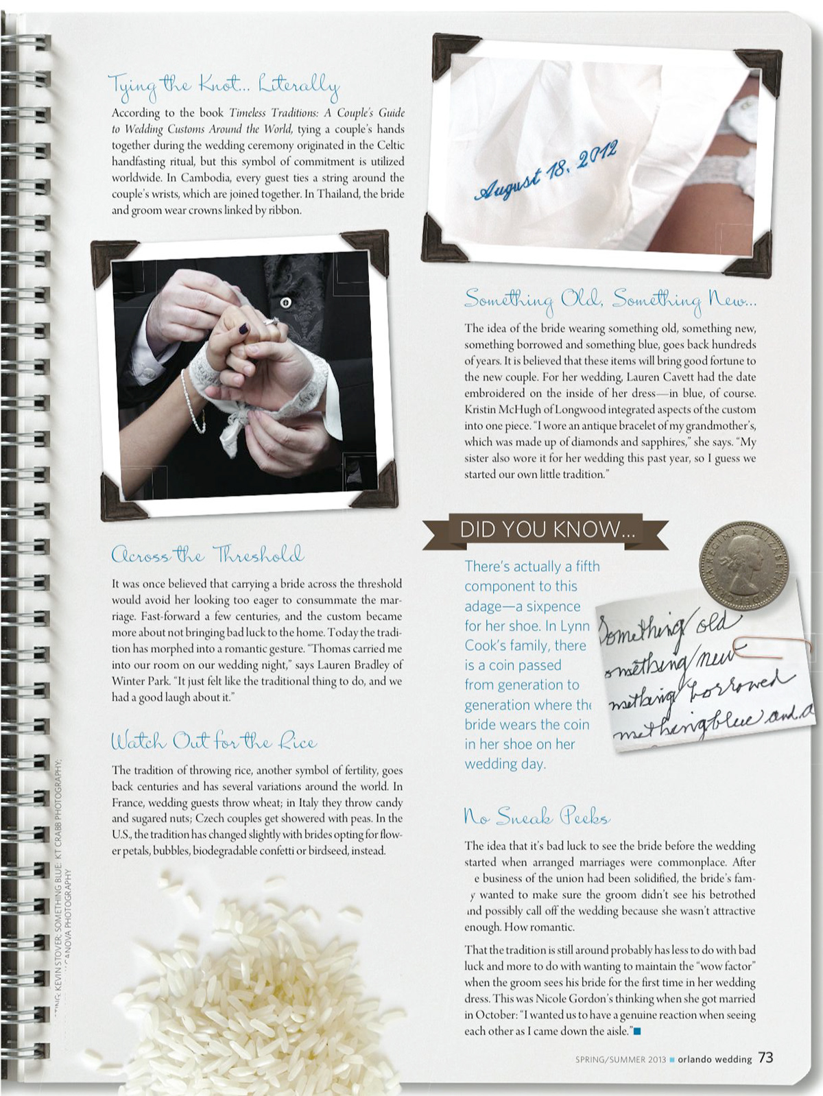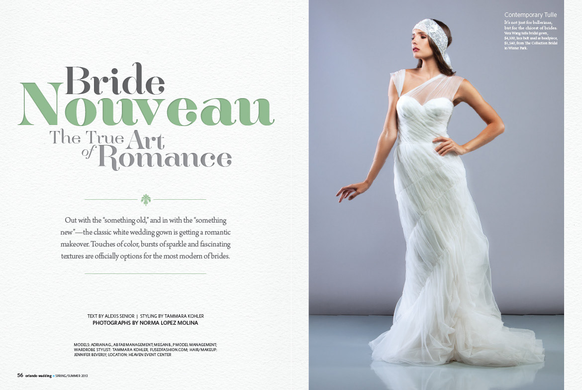 A selection of various editorial layouts from the Spring/Summer 2013 edition of Orlando Wedding Magazine.