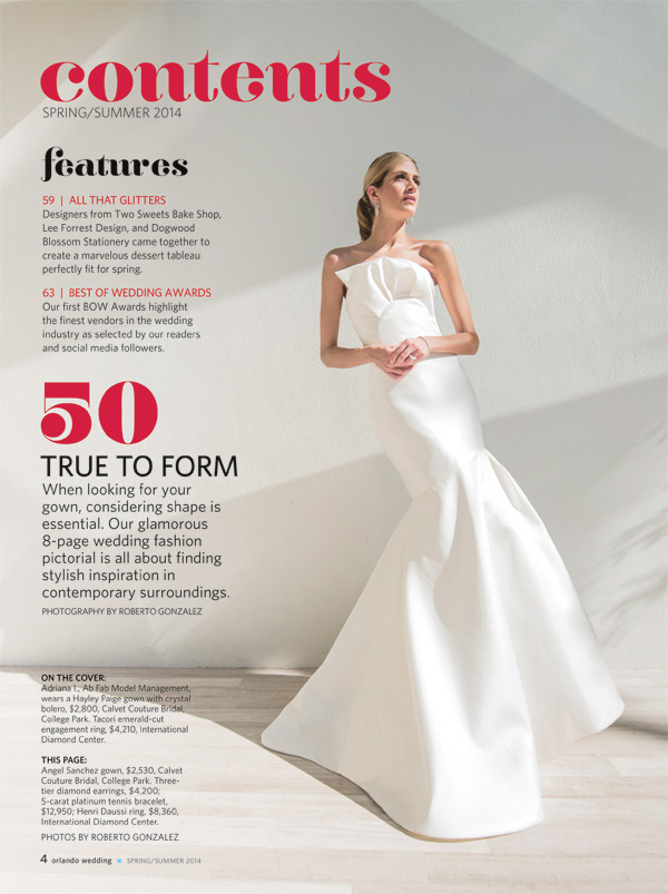 Selections of layouts from the 2014 Spring/Summer issue of Orlando Wedding Magazine.