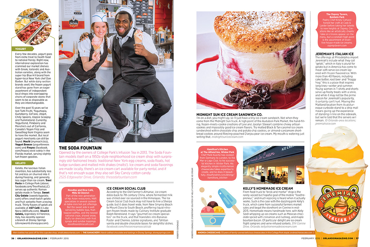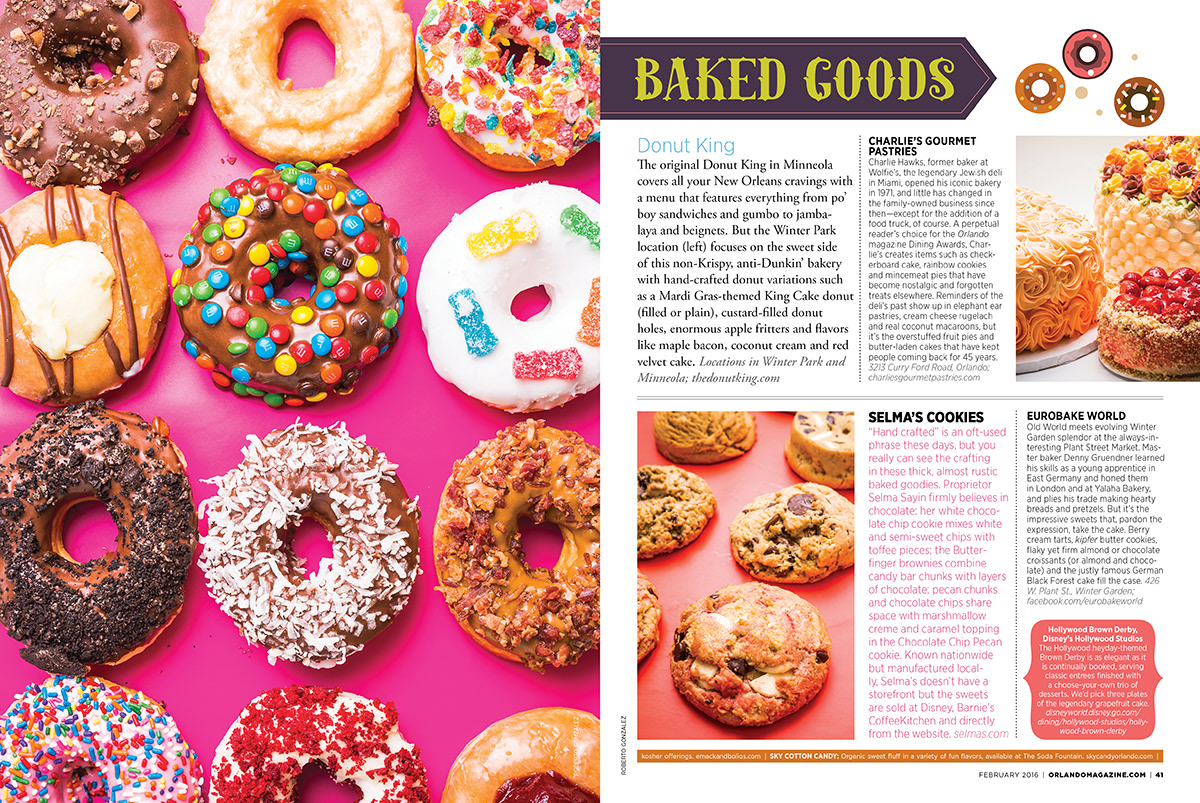 Sweets issue editorial layout for the February 2016 issue of Orlando magazine.